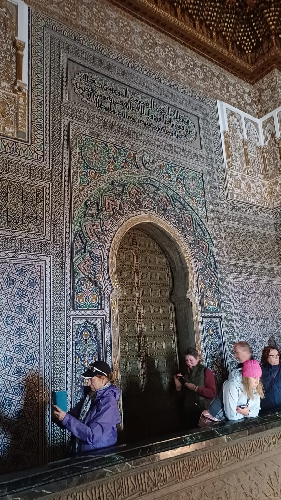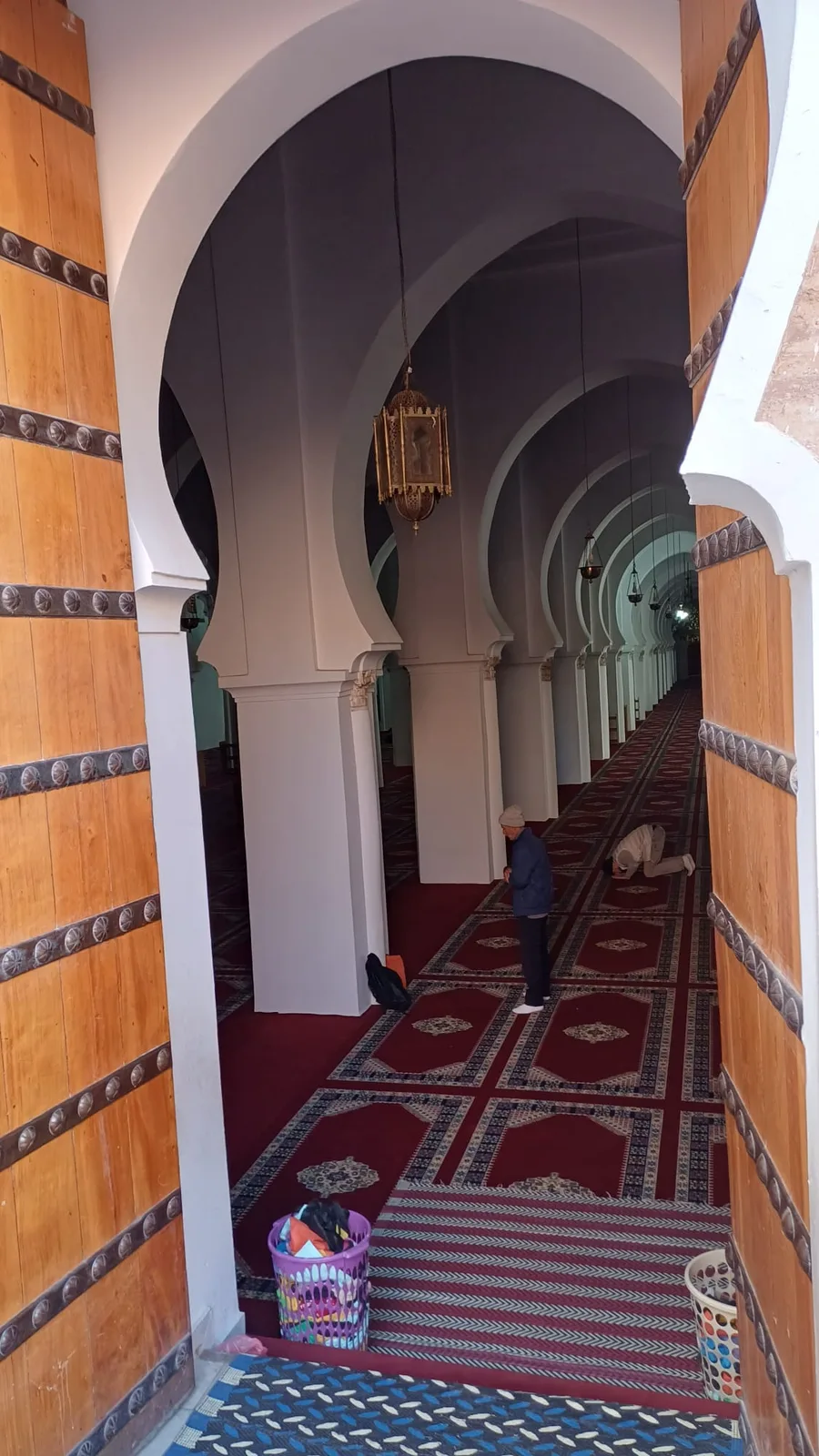 V hotelových pokojích jsou šipky ukazující směr k Mekce, ale modlitební koberečky málokdy (na rozdíl od Ománu, kde je islám přísnější)...v Maroku často vidíme přímo na chodníku či širším prostranství rozprostřený velký koberec a tam se modlí muži jeden vedle druhého ..ženy se modlí v mešitách, doma nebo prostě v interiéru k tomu určeném