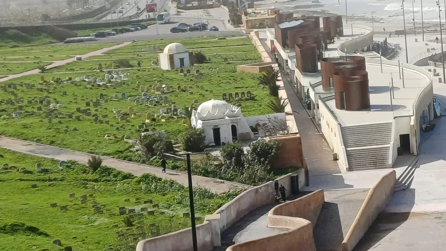 Moderní symbol Rabatu...v popředí židovský hřbitov